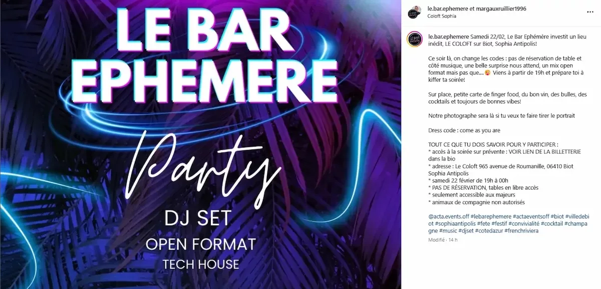 👉 Pour ne rien rater, surveillez les publications du Bar Éphémère sur Instagram et Facebook.