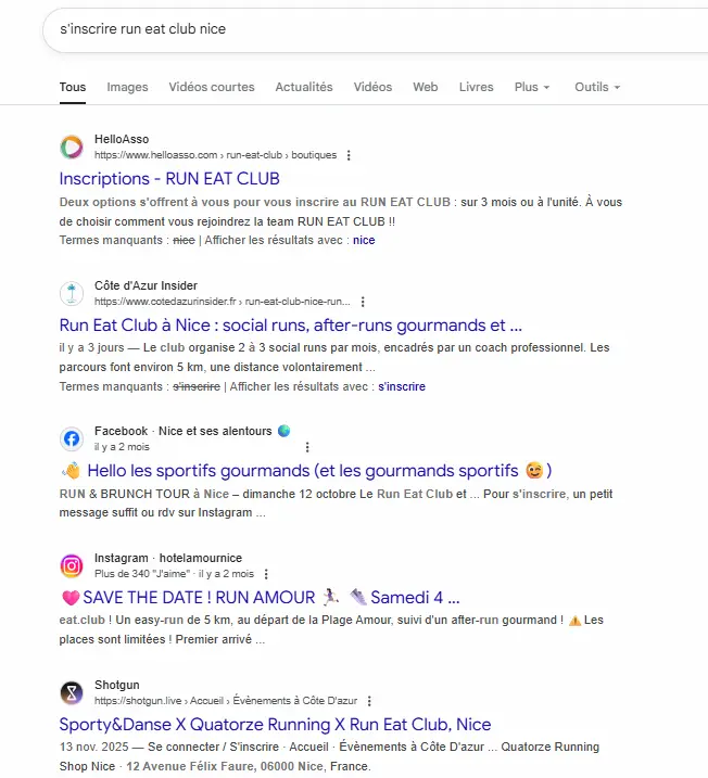 - article long format, optimisé pour les recherches “run club Nice”, “social run” et “Bakery Rave x Run”