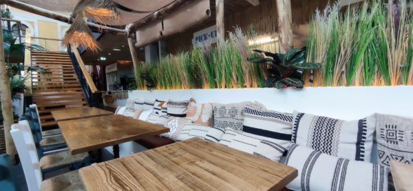 - 🌴L’aspect « paillote – fausses plantes » de la décoration intérieure et l’ambiance Marocaine rappelant quelque peu le Club Med de 1972,